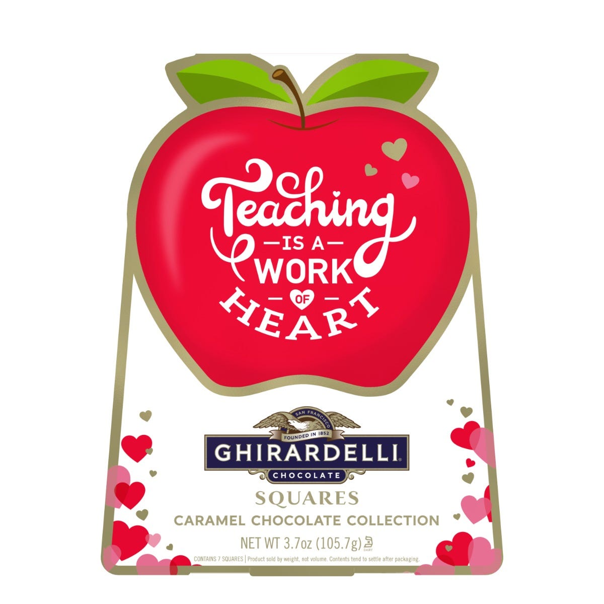 - This box of GHIRARDELLI chocolate caramel and dark chocolate sea salt caramel SQUARES is great for sharing with your teacher