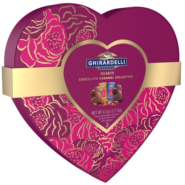 Celebrate the season of love with GHIRARDELLI Chocolate Caramel Hearts Collection. This heart shaped box of individually wrapped chocolate caramel candy hearts is the perfect gift for loved ones or that special someone. GHIRARDELLI chocolate caramel hearts come in milk chocolate and dark chocolate varieties with luscious caramel filling for an indulgent Valentine’s Day treat. The festive heart-shaped chocolate is the perfect way to celebrate the season of love, and the heart-shaped box of chocolate makes a pretty Valentine’s gift. These assorted chocolates are crafted with high-quality ingredients for the ultimate treat, and they’re certified kosher. GHIRARDELLI Makes Life a Bite Better.