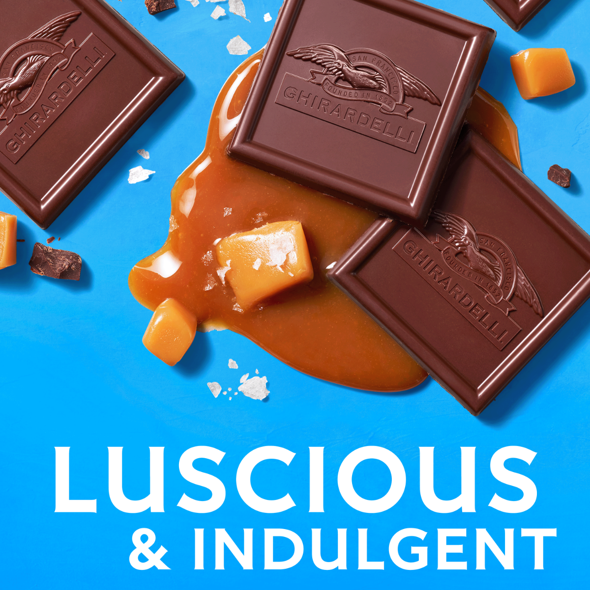 - Luscious, smooth caramel with a touch of sea salt in rich, slow-melting dark chocolate for a satisfyingly sweet treat