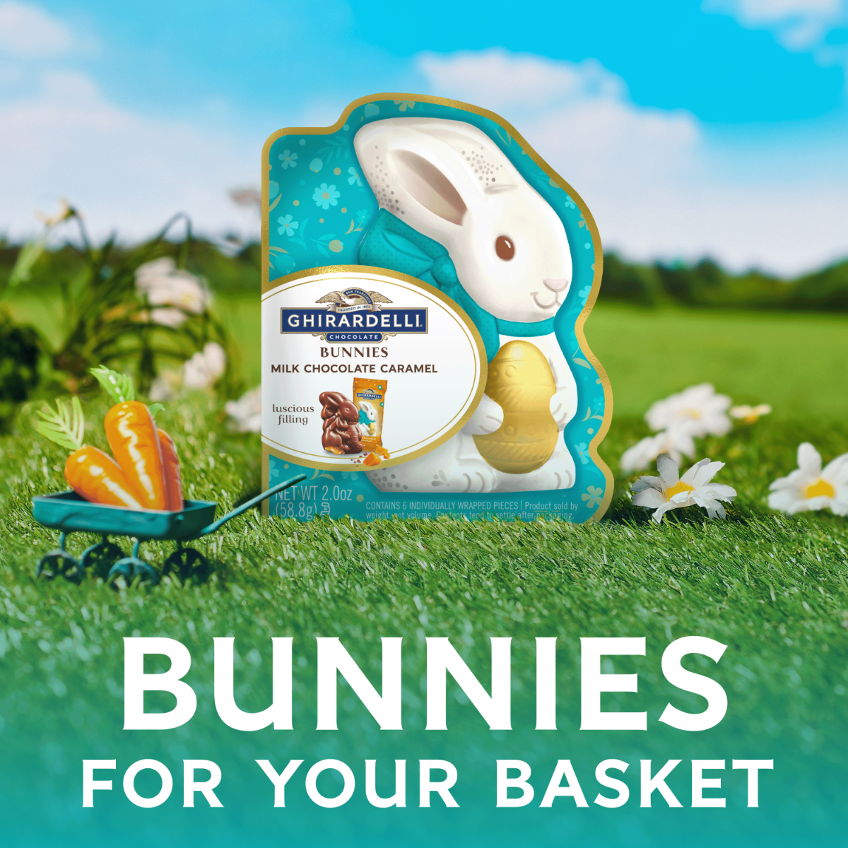 • One (1) 2 oz box of GHIRARDELLI Caramel Milk Chocolate Bunnies, Bunny Shaped Chocolate with Caramel filling