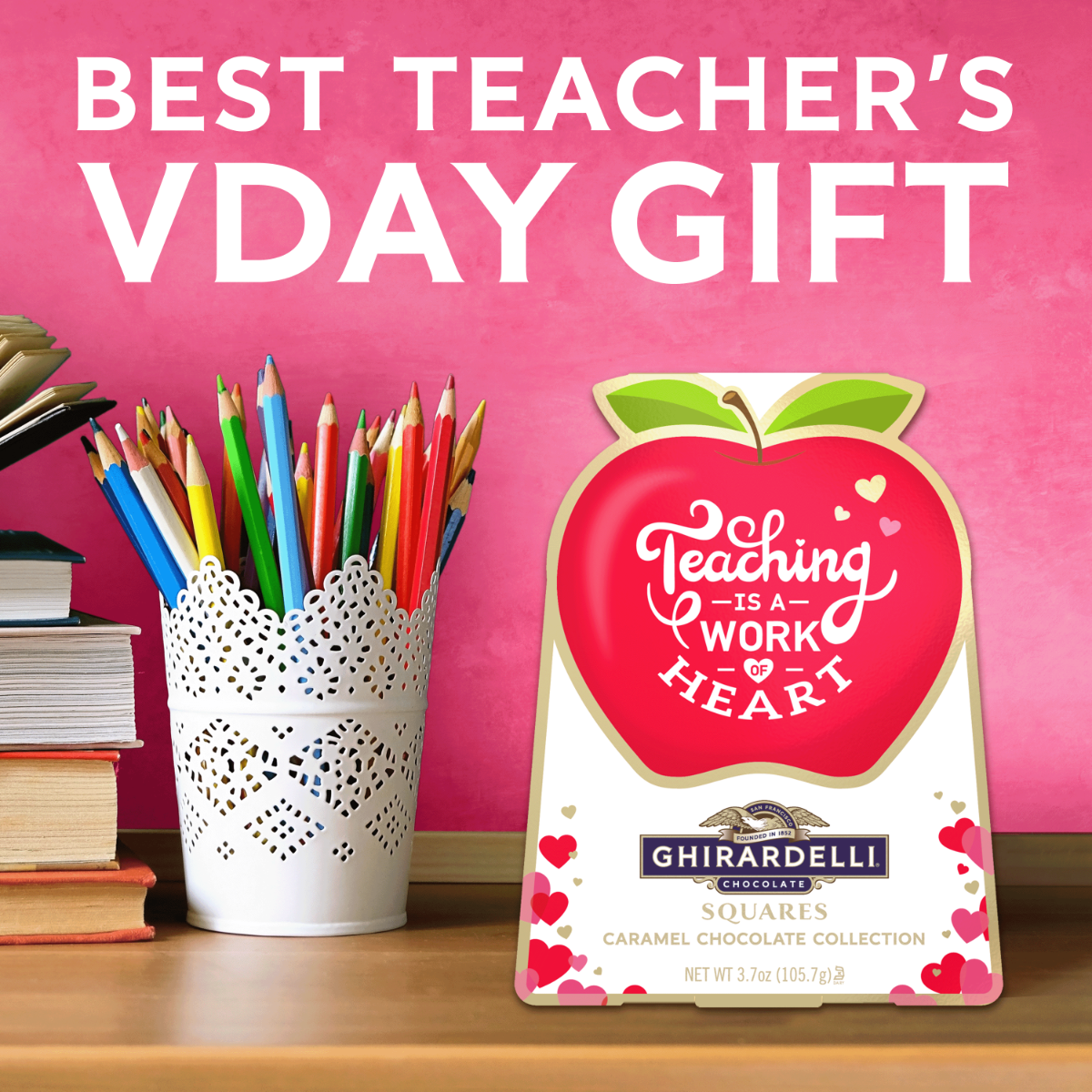 Surprise your teacher with rich, indulgent chocolate with GHIRARDELLI Chocolate Caramel SQUARES. These individually wrapped chocolate SQUARES make the perfect Valentine’s Day gift. Each package includes two flavors: Milk Chocolate Caramel and Dark Chocolate Sea Salt Caramel, for delicious variety. Luscious caramel fills the rich chocolate for an indulgent treat. These individual treats are easy to enjoy. Premium ingredients, including high quality cocoa beans, are part of the GHIRARDELLI difference: a commitment to ultimate quality from Bean to Bar. GHIRARDELLI Makes Valentine’s Day A BITE BETTER.