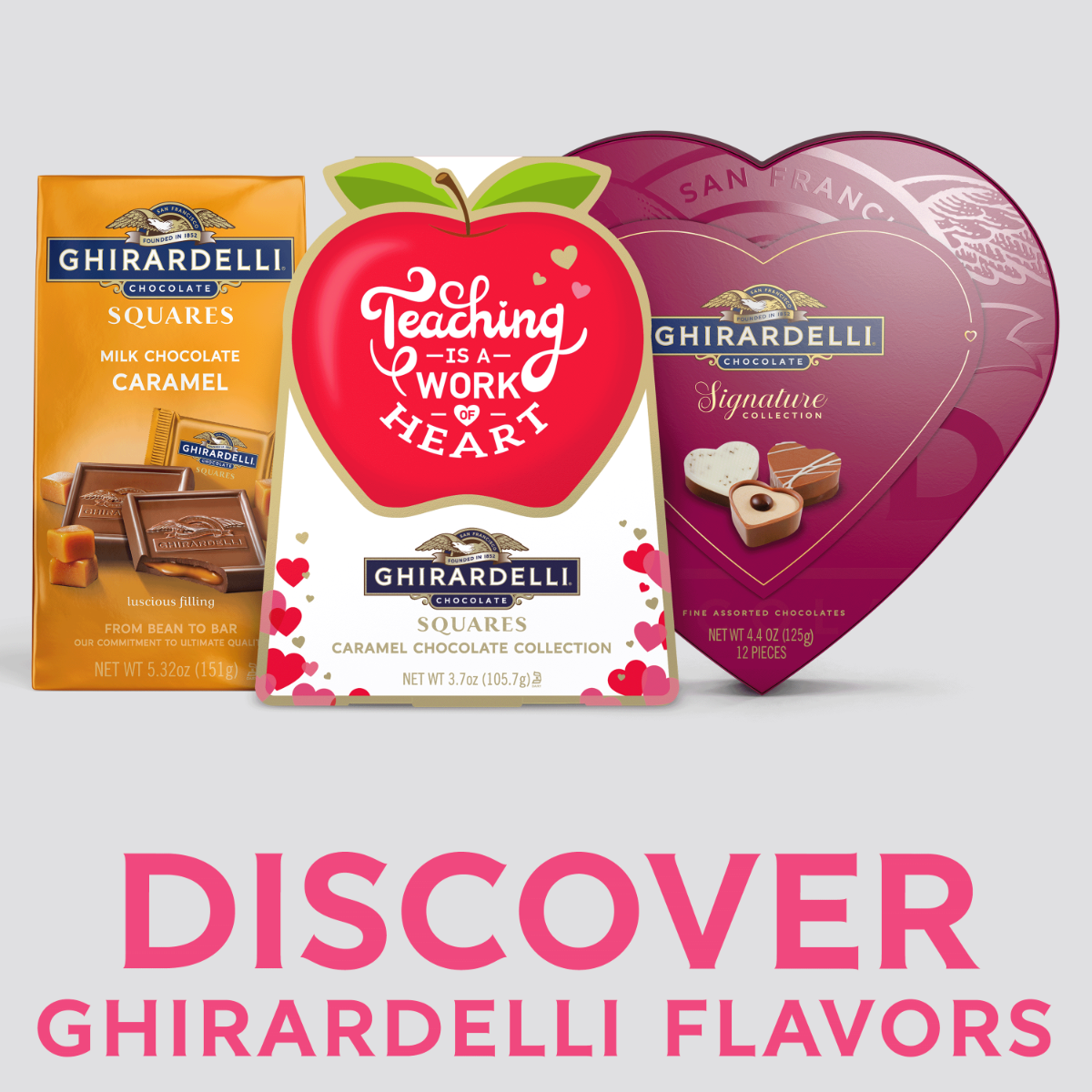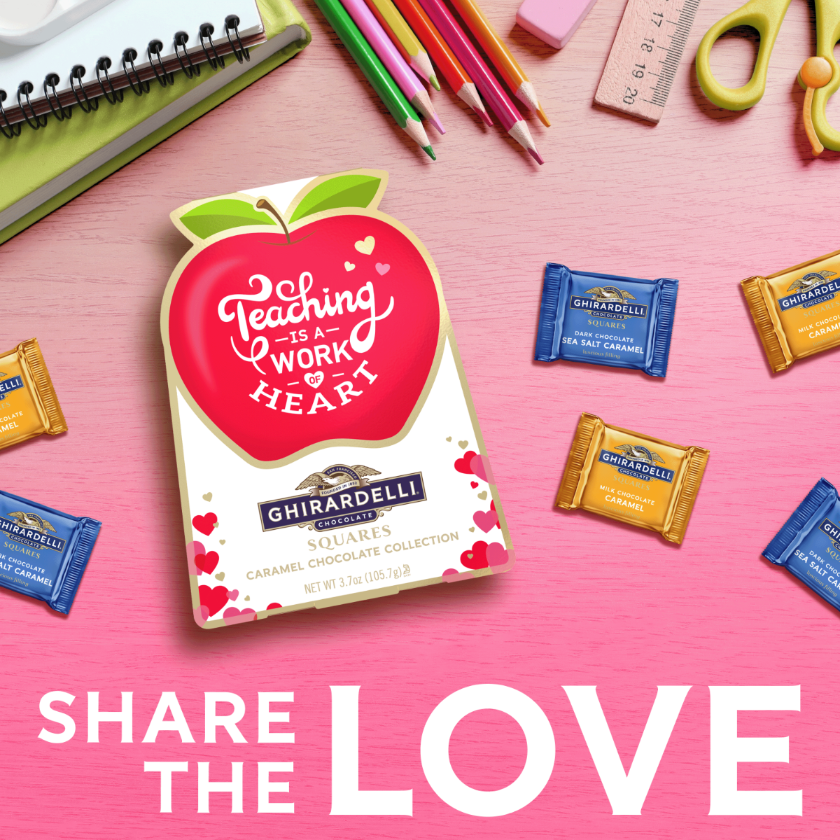 - This box of GHIRARDELLI chocolate caramel and dark chocolate sea salt caramel SQUARES is great for sharing with your teacher