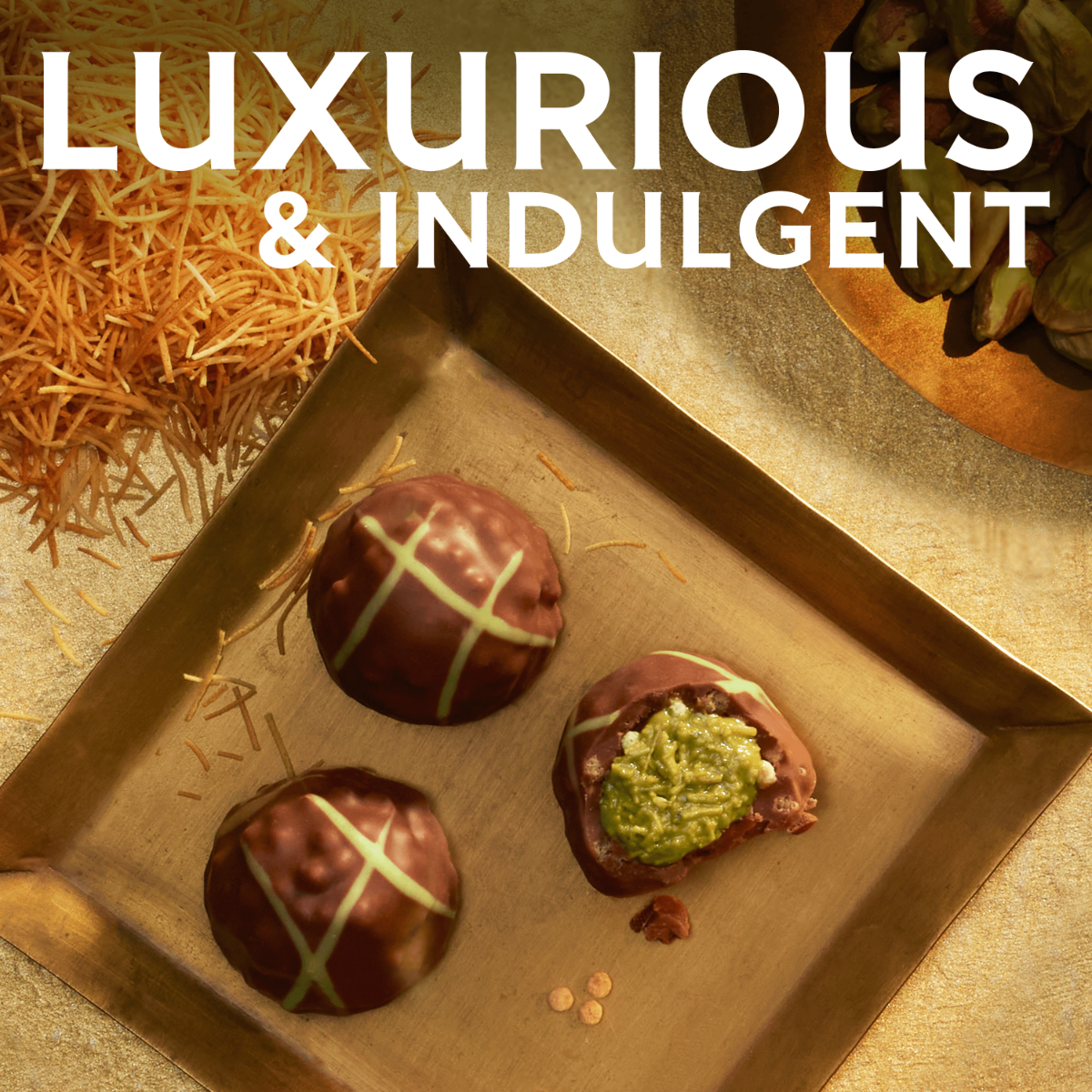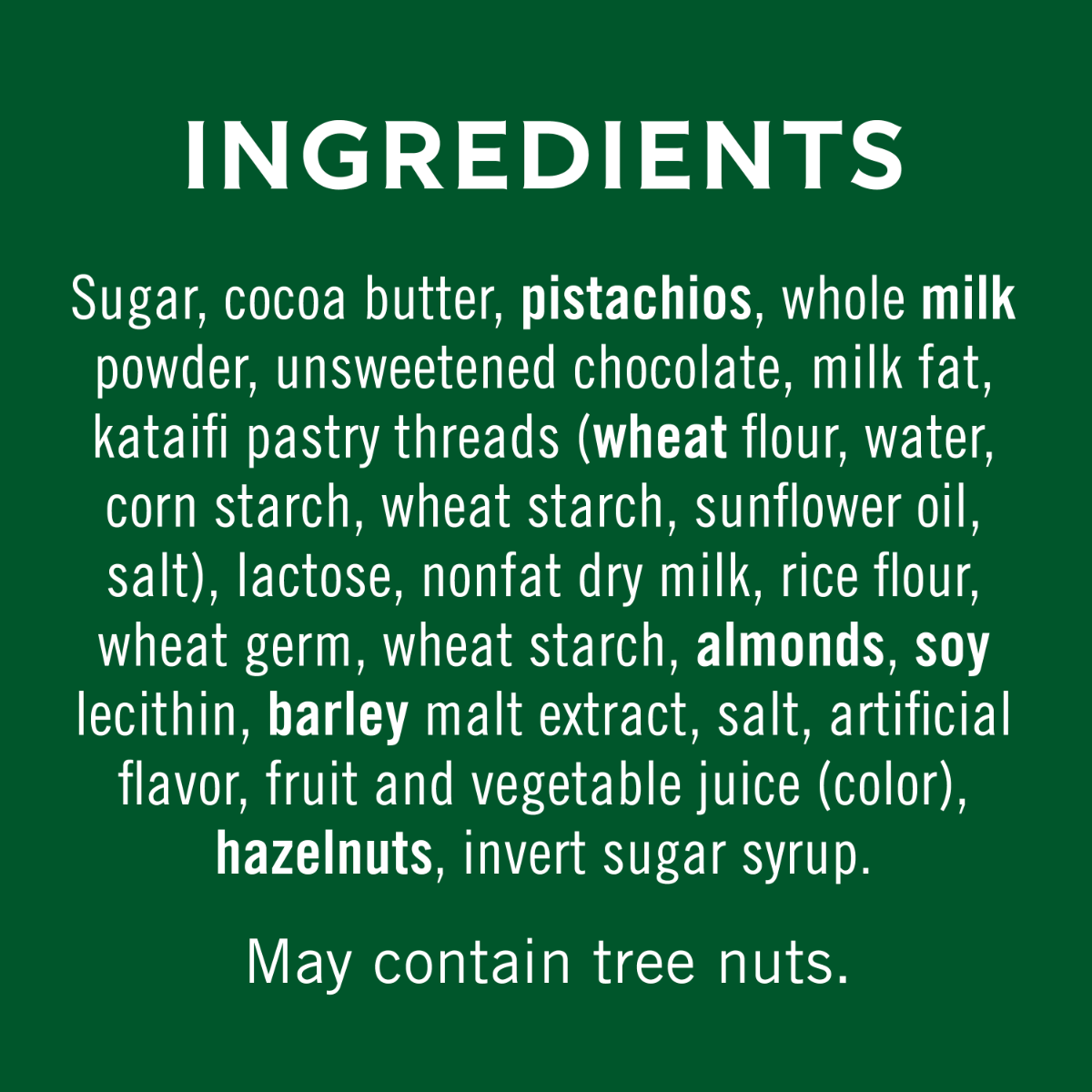 - Rich GHIRARDELLI milk chocolate with pistachio filling and crispy toasted kataifi