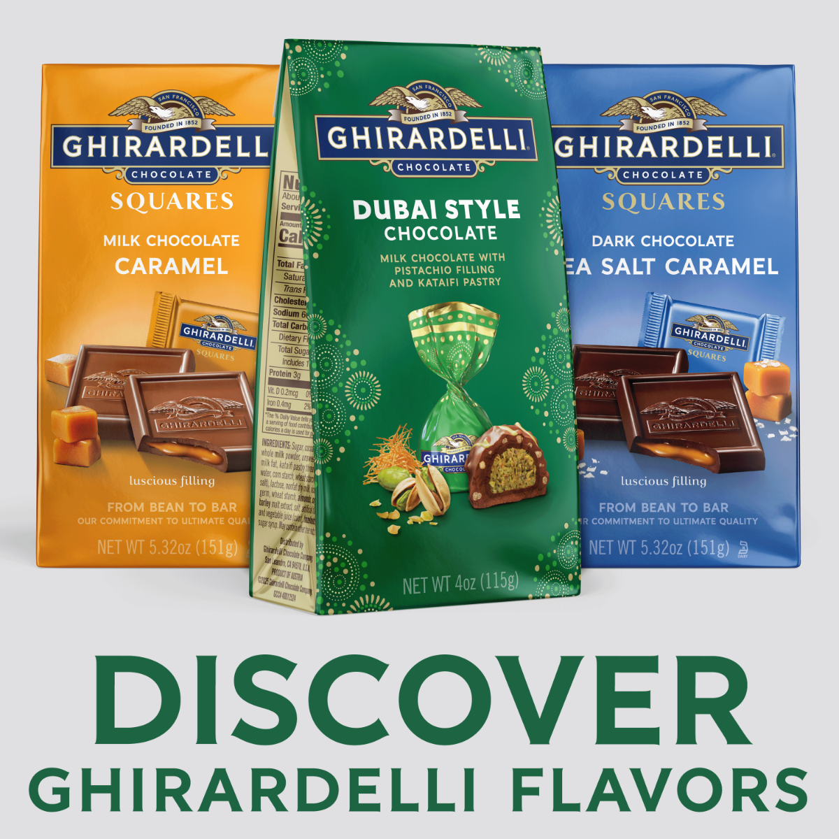 Enjoy the great taste of GHIRARDELLI Dubai Style Milk Chocolate for an incredible chocolate experience. A rich GHIRARDELLI milk chocolate with pistachio filling and crispy toasted kataifi, creating a delightful crunchy bite in each piece. GHIRARDELLI crafts each product with premium ingredients and high-quality cocoa beans. GHIRARDELLI Makes Life A BITE BETTER.