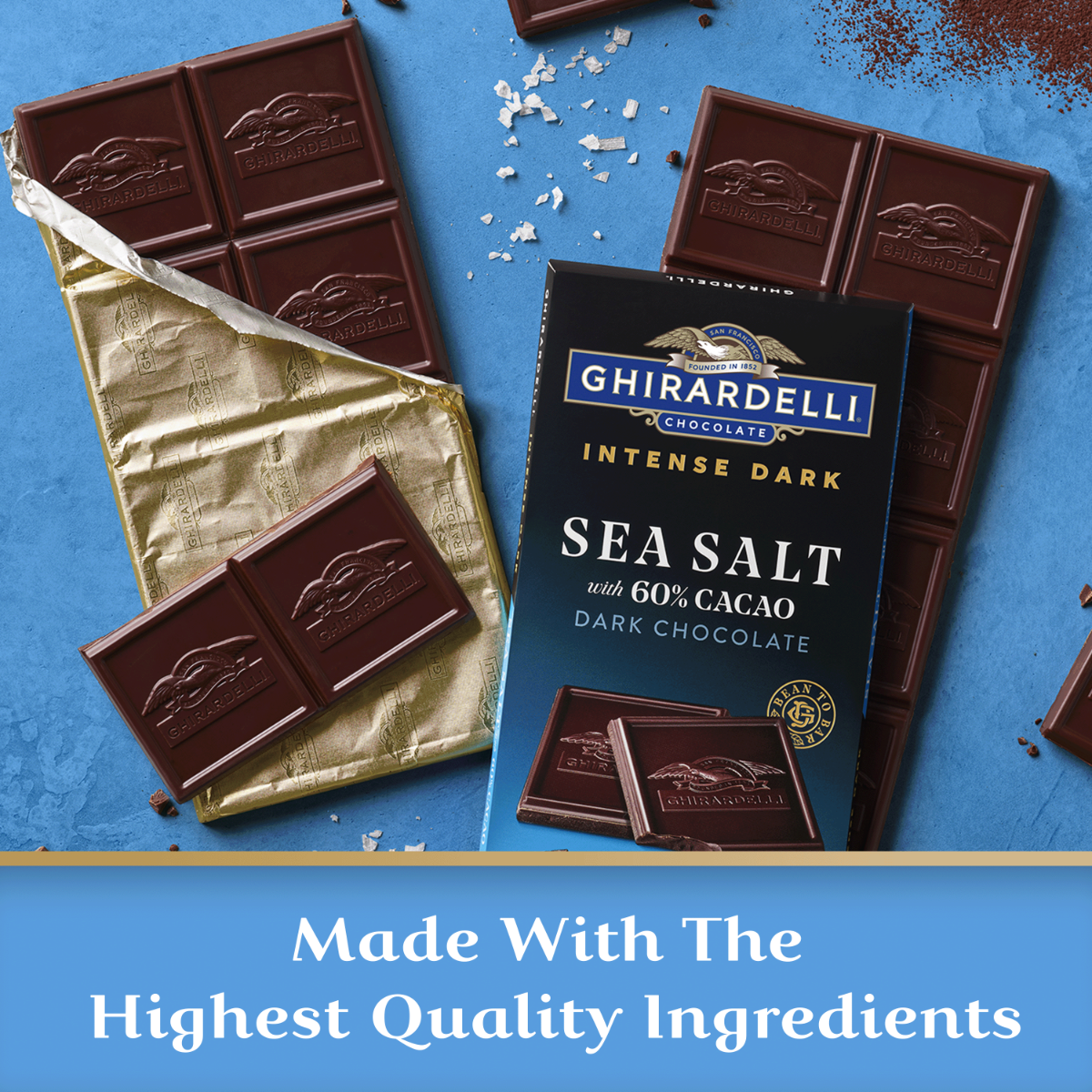 - GHIRARDELLI Sea Salt with 60% Cacao chocolate bar is the ultimate indulgence, party food or gift