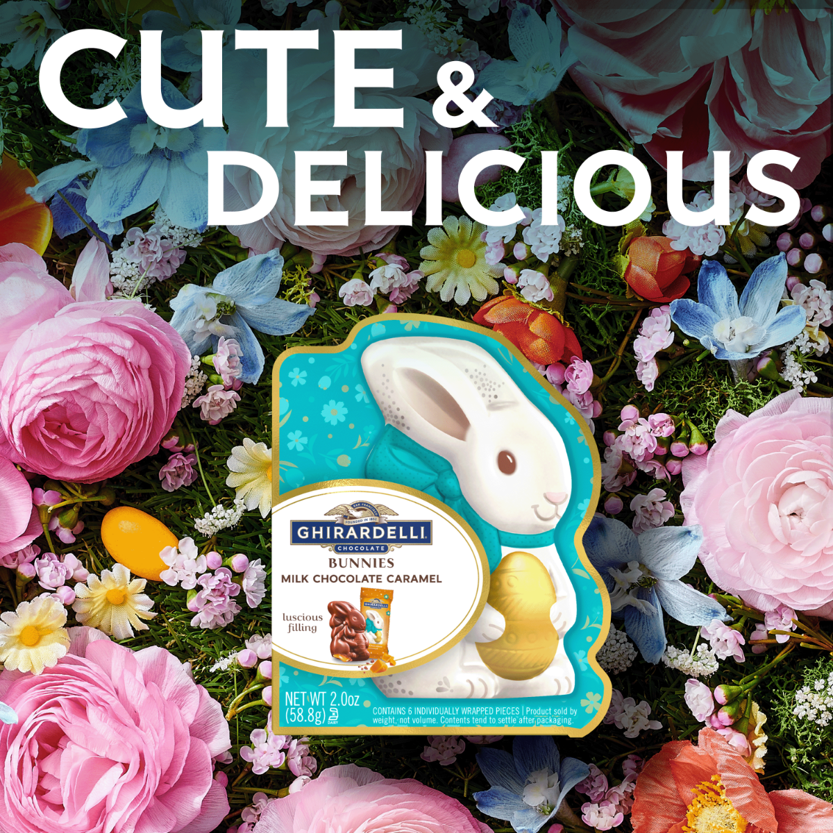 • One (1) 2 oz box of GHIRARDELLI Caramel Milk Chocolate Bunnies, Bunny Shaped Chocolate with Caramel filling