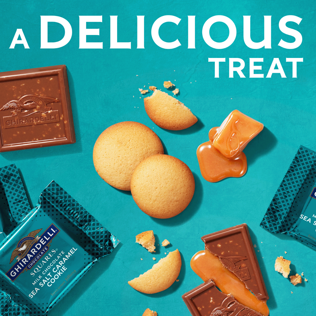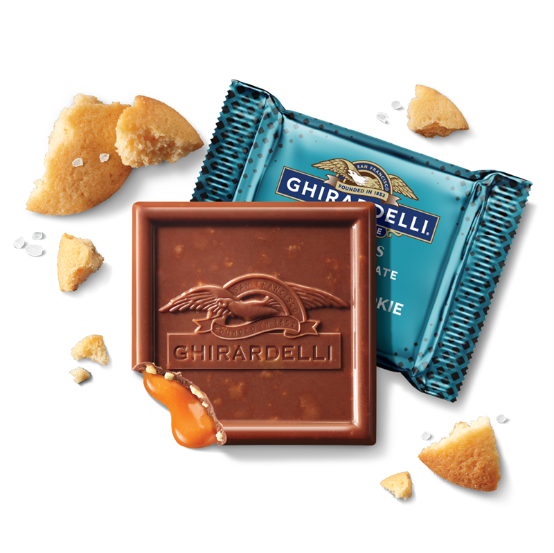 GHIRARDELLI Milk Chocolate Sea Salt Caramel Cookie SQUARES offer a delightful blend of flavors. Rich milk chocolate surrounds a luscious caramel filling with a touch of sea salt and crunchy cookie bits. Perfect for a sweet treat any day, these SQUARES can be shared with friends or savored alone. Individually wrapped, they are ideal for an afternoon pick-me-up or gifting to someone special. GHIRARDELLI products are crafted with premium ingredients and high quality cocoa beans. GHIRARDELLI Makes Life A BITE BETTER.